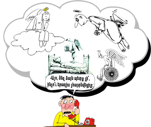 -Այ մարդ,- հորդորեց հրեշտակը,- մեզ մոտ մտածել-չմտածել չկա, մերը ռիսկ է՝ հանուն սիրելի՜ ժողովրդի, նրա հուսալի՜ վաղվա օրվա, հանո՜ւն…
