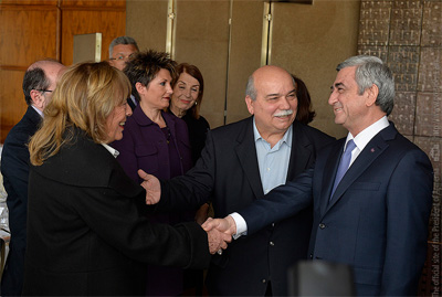 Նշելով, որ Հայաստանի ԱԺ-ն եվրոպական բազմաթիվ երկրների խորհրդարանների հետ բարեկամական կապերի բարի ավանդույթ է ձևավորել, Սերժ Սարգսյանը կարևորել է Հունաստանի խորհրդարանում Հայաստանի հետ բարեկամության խմբի վերաձևավորումը, որ նրա համոզմամբ, երկկողմ խորհրդարանական կապերի զարգացման լուրջ խթան է: Հանրապետության նախագահը առանձնահատուկ ընդգծել է երկու բարեկամ երկրների խորհրդարանների սկզբունքային դիրքորոշումների կարևորությունը միմյանց համար զգայուն հարցերում: Այդ համատեքստում Սերժ Սարգսյանը երախտագիտություն է հայտնել Նիկոս Վուցիսին և ի դեմս նրա` Հունաստանի խորհրդարանին, որը առաջիններից մեկը ճանաչեց Հայոց ցեղասպանությունը, իսկ նախանցյալ տարի օրենք ընդունեց Ցեղասպանության ժխտումը քրեականացնելու մասին: ՀՀ նախագահը նշել է, որ հունահայ համայնքի և Հունաստանում գործող հայկական ավանդական կազմակերպությունների ներկայացուցիչները ևս իր հետ հանդիպմանը խնդրել են շնորհակալություն փոխանցել Հունաստանի խորհրդարանի նախագահին և պատգամավորներին` հիշեցնելով, որ այս տարի լրանում է Հունաստանի կողմից Հայոց ցեղասպանության ճանաչման 20-ամյակը:
