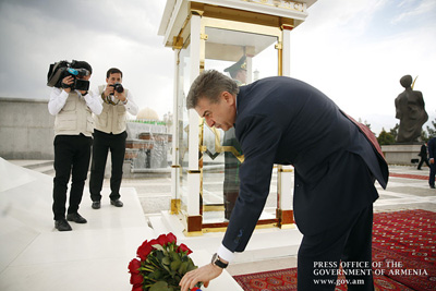 Վարչապետ Կարապետյանն Աշխաբադի քաղաքապետ Շամուհամմեդ Դուրդիլիևի ուղեկցությամբ այցելել է նաև Թուրքմենստանի անկախության հուշահամալիր և ծաղիկներ խոնարհել: